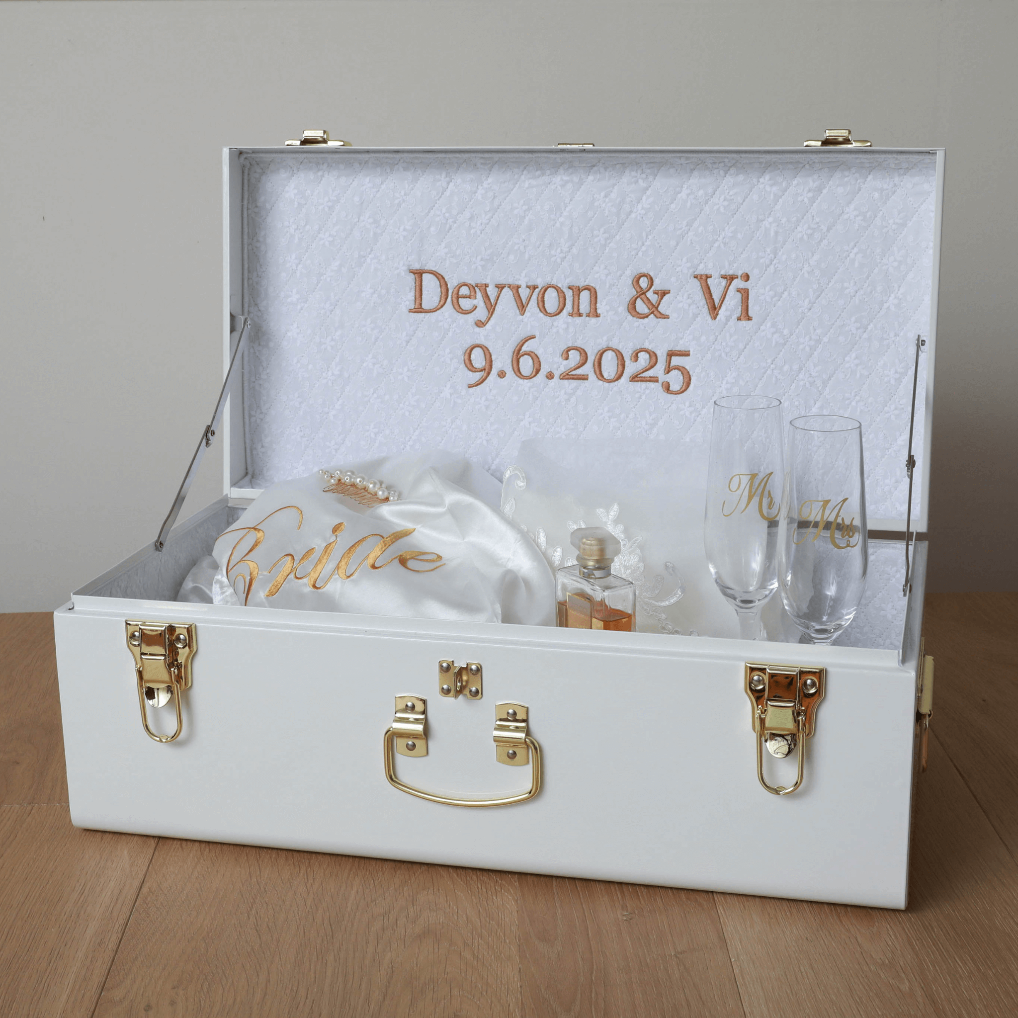 We thoughtfully style each trunk with details as chosen by you. Since every piece is unique, we cannot accept returns, cancellations, or exchanges.