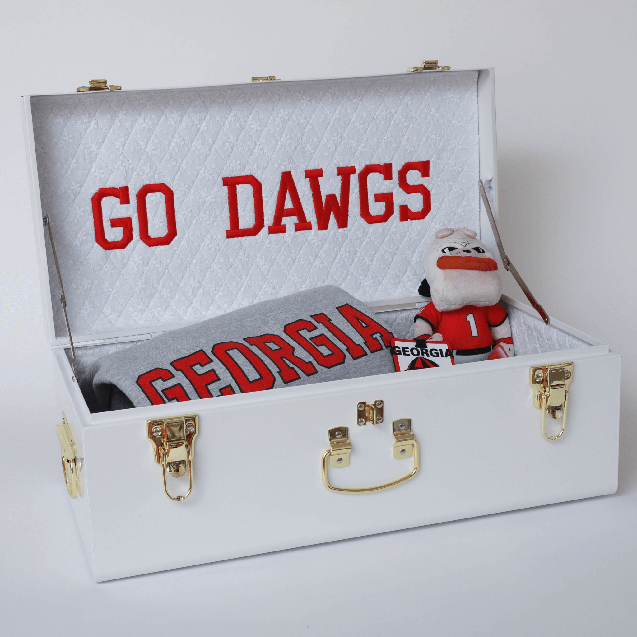 Since each trunk is lovingly customized for you, we cannot accept returns or exchanges.