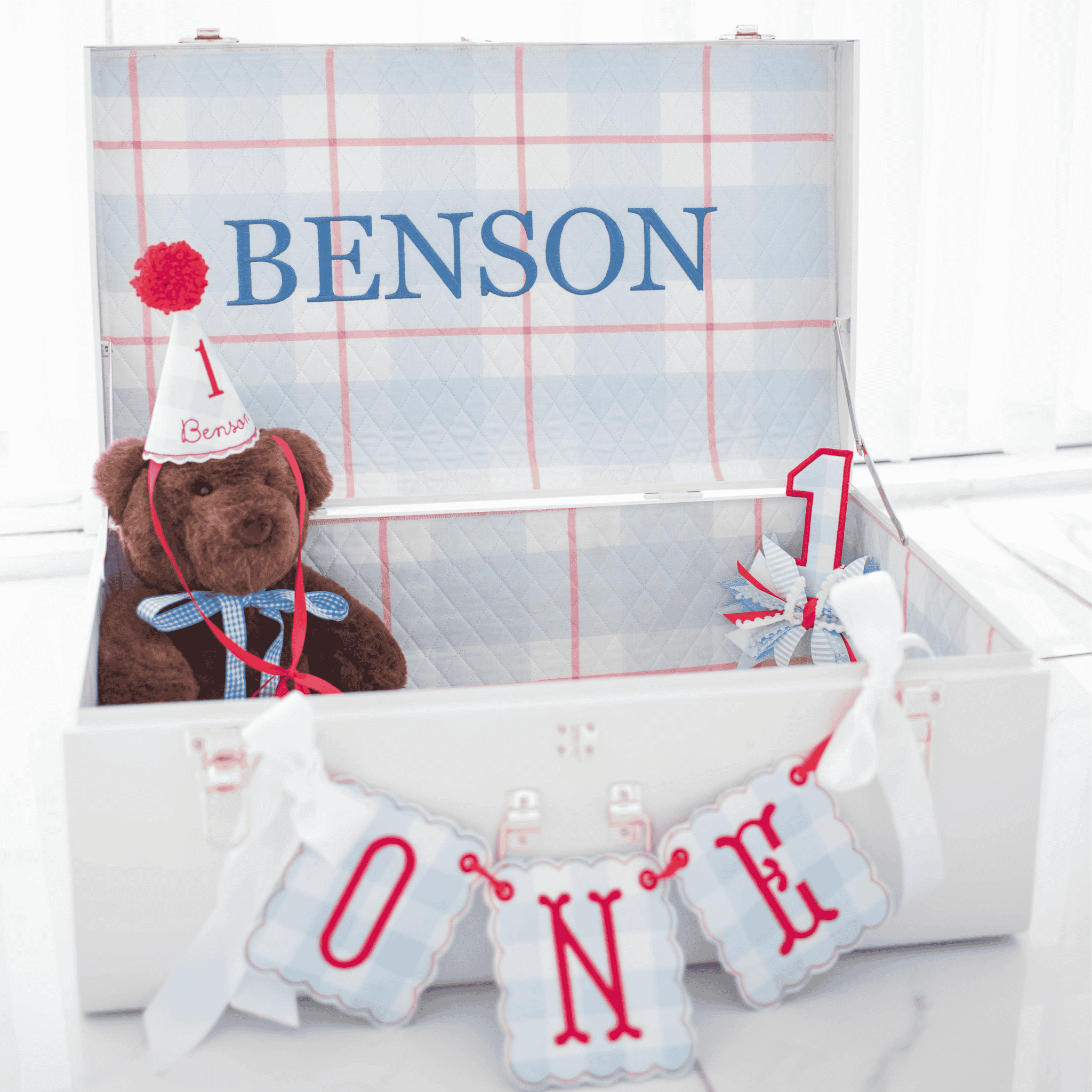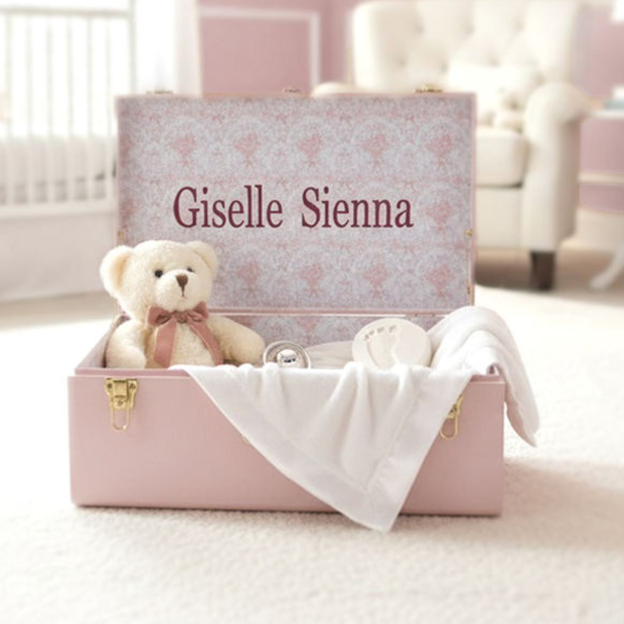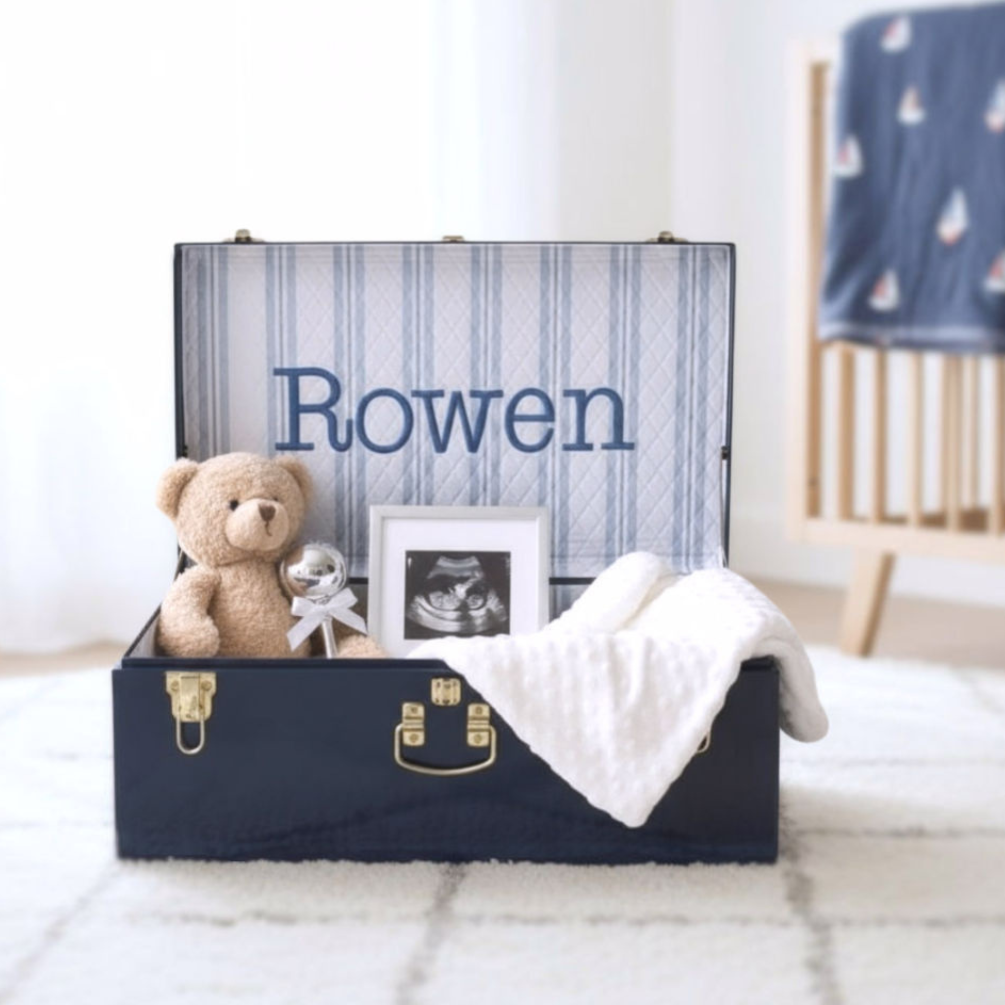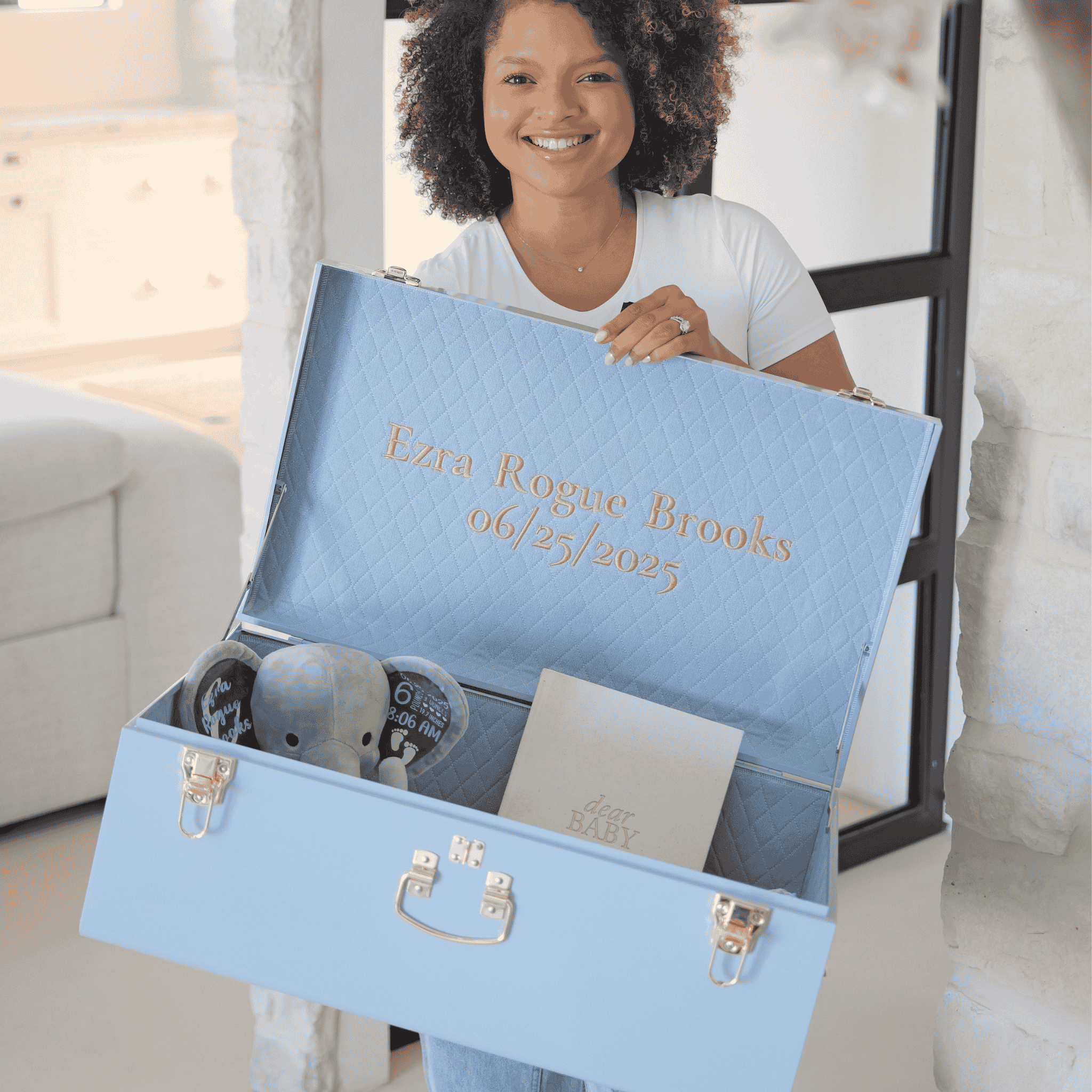 Constructed to hold your stories for generations and made to order with custom personalization, each trunk is designed to hold your baby’s milestones. Memory boxes are a thoughtful, custom gift for baby showers, gender reveals, births, 1st birthdays, golden birthdays, and more. All trunks currently ship with gold hardware.