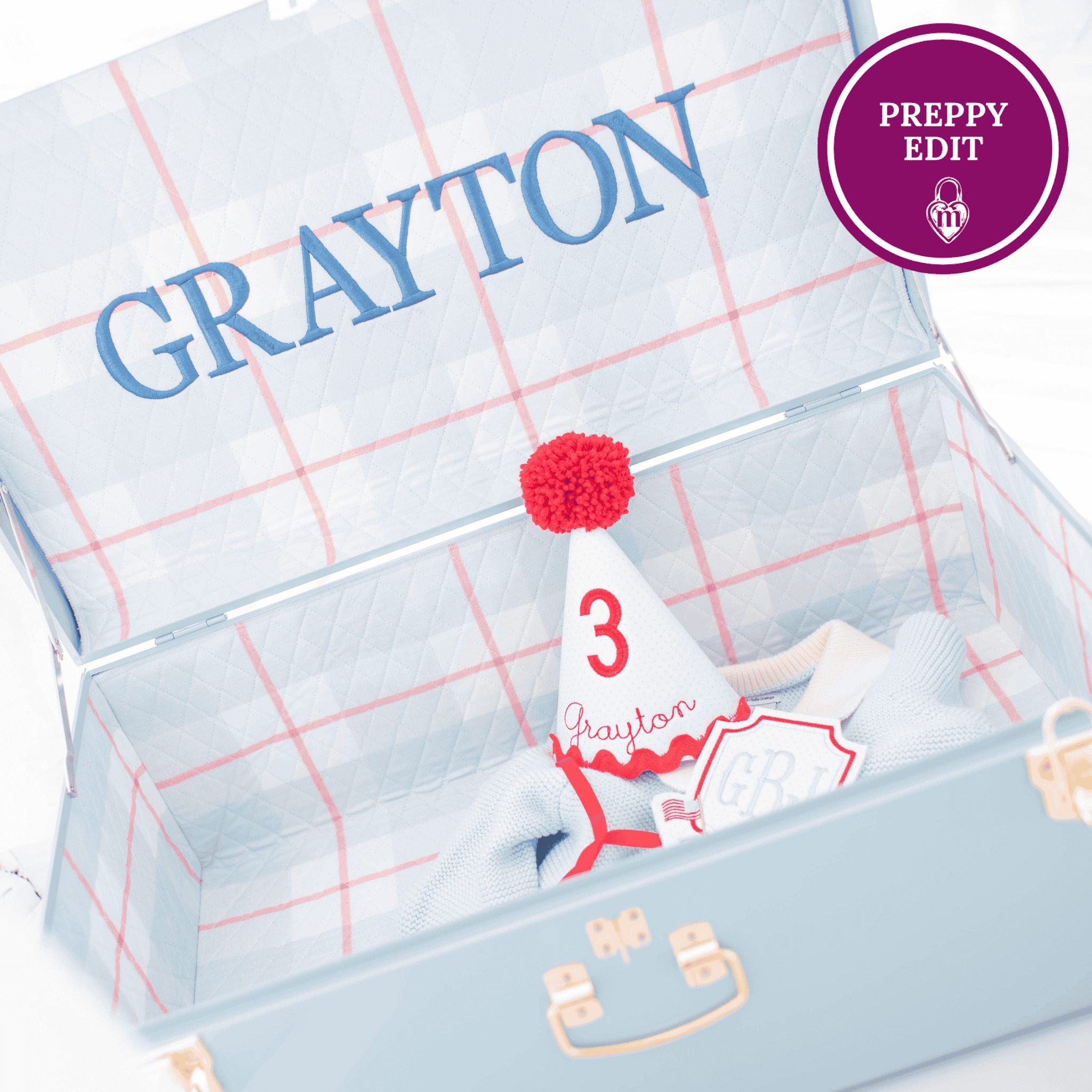 We thoughtfully style each trunk with details as chosen by you. The natural variations of our handmade trunks are part of their uniqueness and character. Slight differences in color and pattern alignment may occur. Fabric prints and embroidery may intersect in unexpected ways. We occasionally adjust fabrics, fonts, and lettering to enhance each piece's distinctive style. While imperfections may be present, please know that your trunk is made with care and attention to detail.
